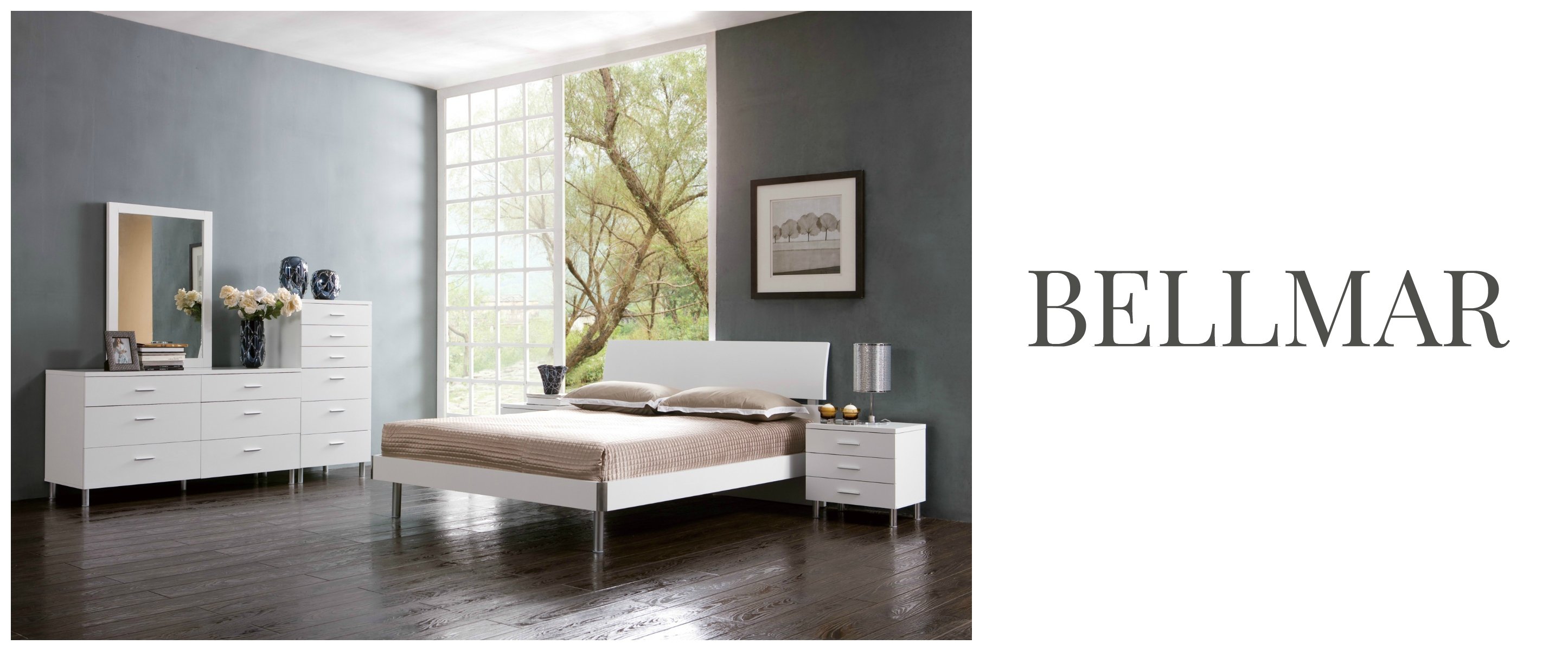 If you like the Icon, but just want a fresh light color? Look no further! Coming soon to our stores is something we all have been waiting for: a white bedroom set! Please give a big warm welcome to our new Bellmar bedroom collection. Sister to the Icon, the Bellmar boasts the same stylish features but without the glass paneled drawer accents.