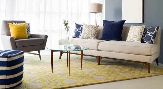Darker colors help define a more intimate space while lighter colors create a more spacious feel. Fiery hues such as yellow, orange or red add warmth while cool colors (blues, greens) creates a calming mood. For a cohesive look, choose a rug that compliments two or three main colors in the room. If there are a lot of color and pattern going on in your space, then choosing a neutral color rug is okay, but don’t play it too safe. Choose patterns and bright colors if your primary furniture is a solid color. Geometric prints are best for modern settings while floral prints work better for a more traditional look.